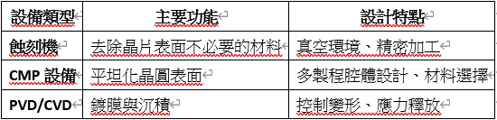 <<強哥提醒!若您不想看細節,只需知道半導體設備的設計原則及其結構要求,不僅包括了設備本身的精密加工與複雜製程,同時也需要考慮到材料的選擇如何影響整體性能。此段內容您可只看圖表唷!>>