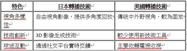 美國與日本在運動轉播技術上的不同之處