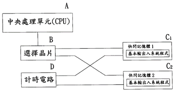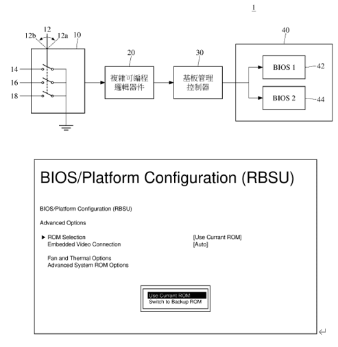 - 一種BIOS切換裝置(專利號I750215),申請日期2017/08/30,本發明專利公開一種能讓使用者在兩個BIOS版本(BIOS1與BIOS2)之間切換的系統。<這一段在強哥的GIPR Channel部落格裡有更多的介紹>