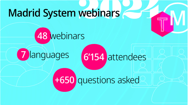 今年馬德里體系網路研討會舉辦了48場跨7種語言的網路研討會,與全球超過6,390名與會者進行了交流。我們的目標:滿足您最迫切的需求並提供量身定制的實用見解。