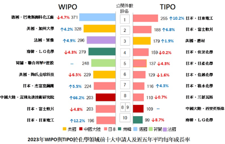 二、經濟部智慧財產局於2024年11月27日發布「從發明專利公開案件20年趨勢看全球和我國化學領域專利技術發展」