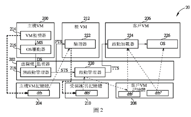 - 一種虛擬機操作系統配置系統及非暫時性機器可讀介質(專利號I857893),申請日期2023/12/25,本發明專利公開一個虛擬機器(VM)作業系統(OS)配置系統。<這一段在強哥的GIPR Channel部落格裡有更多的介紹>