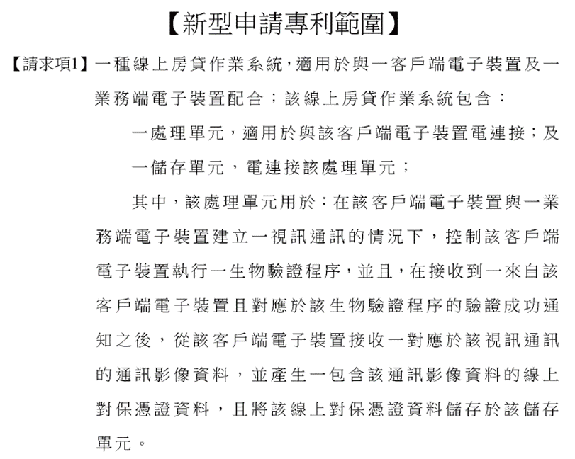 - 一種線上房貸作業系統(專利號M658787),申請日期2024/04/17,本新型公開一個創新的線上房貸作業系統架構。<這一段在強哥的GIPR Channel部落格裡有更多的介紹>