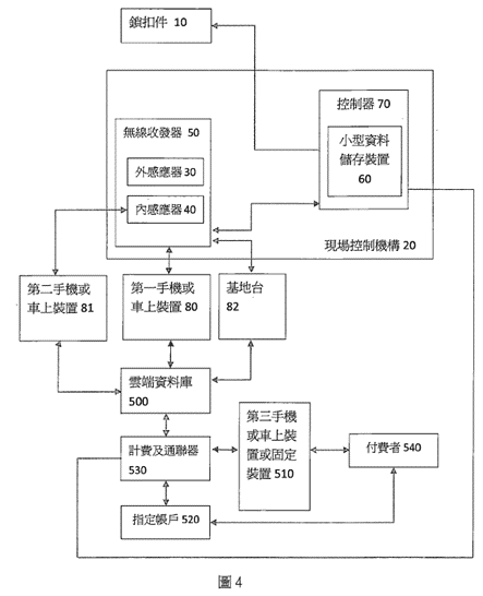 - 一種感應式停車位鎖扣自動管理系統(專利號M555529),申請日期2017/08/31,本新型公開一種創新的智慧型停車位管理系統,此管理系統可讓使用者在手機上通過工具程式完成付費。