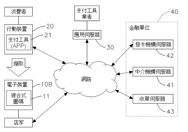 - 一種複合式圖碼的行動支付系統(專利號M575888),申請日期2018/11/29,本新型公開一種創新的行動支付系統,核心在於整合兩種不同形式的圖碼,藉由組合產生一個複合式圖碼來進行交易。
